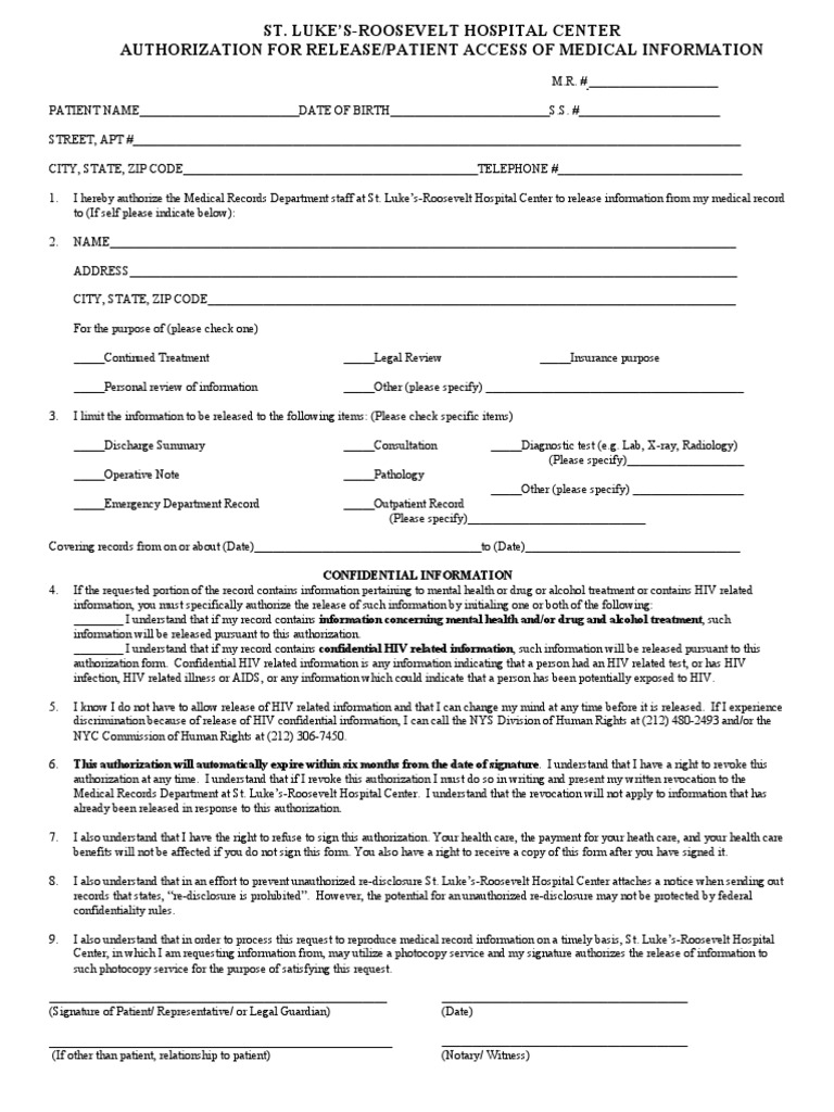 Https Www Saintlukeskc Org Sites Default Files 2019 09 Information 20request 20 E2 80 93 20patient 20authorization Pdf